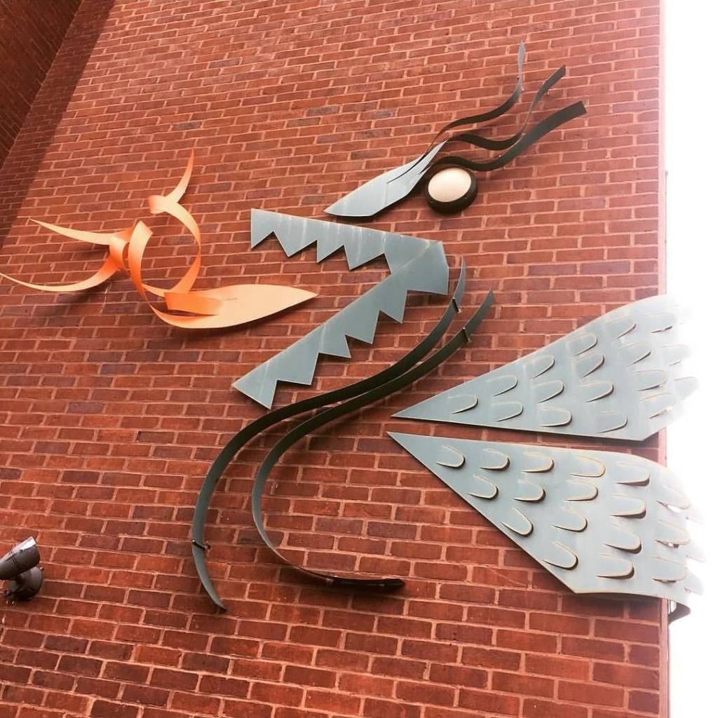 We’ve had our first recommend dragon over on Instagram: this beastie lives on the side of St George’s Hospital, Tooting. Spotted in the wild by The Story Beast, flagged by Jon Gracey. Much obliged, chaps!
