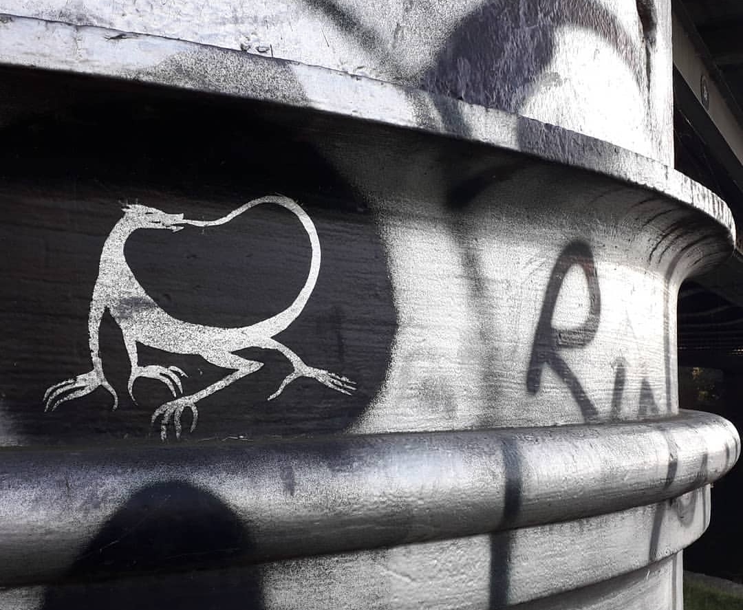 Wingless little dragon spotted, in ouroborous pose, on a bridge near Bow Locks.