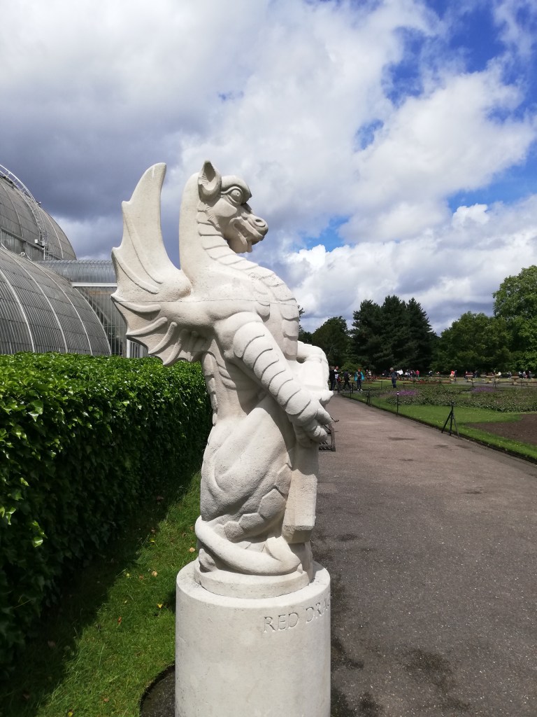 Fairly camp dragon and Pride flag spotted at Kew Gardens. Thanks to Instagram user @anynamebutbecky who spotted this proud and fierce member of the Queen’s Beasts, among friends, hanging out outside Kew’s famous palm house greenhouse.